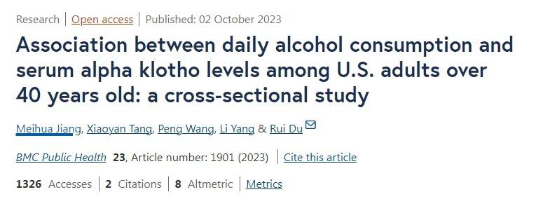 《BMC公共卫生》期刊上也曾发布过关于长寿因子Klotho与饮酒关系的研究。通过观察11558人饮酒量与α-Klotho水平的变化情况,发现中重度饮酒者α-Klotho水平最低,对比不喝酒的人,轻度或原轻度饮酒者的α-Klotho水平也有一定程度下降。
