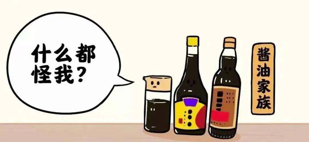 “哎呀,小心点!吃酱油容易变黑!”